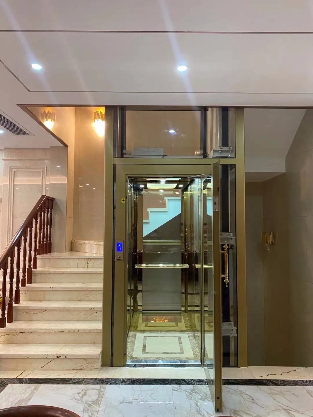? 天津市洋郡電梯有限公司.是一家電梯設計、銷售、安裝、維保服務為一體。主營各種電梯產(chǎn)品,包括別墅電梯、觀光電梯、乘客電梯、住宅 安裝便捷 無需獨立機房,自帶一體化井道。安裝非常簡便,只需一周左右即可完成,而且可以直接安裝在已經(jīng)完成裝修的地板上而不破壞現(xiàn)有裝修。
